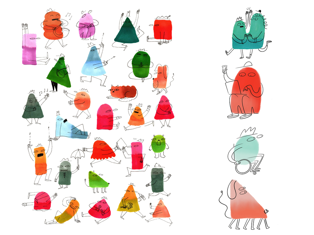 The digital characters were based on a previous analogue drawing exercise that we replicated at the event, encouraging attendees to create their own joyful character with a base shape to help them.